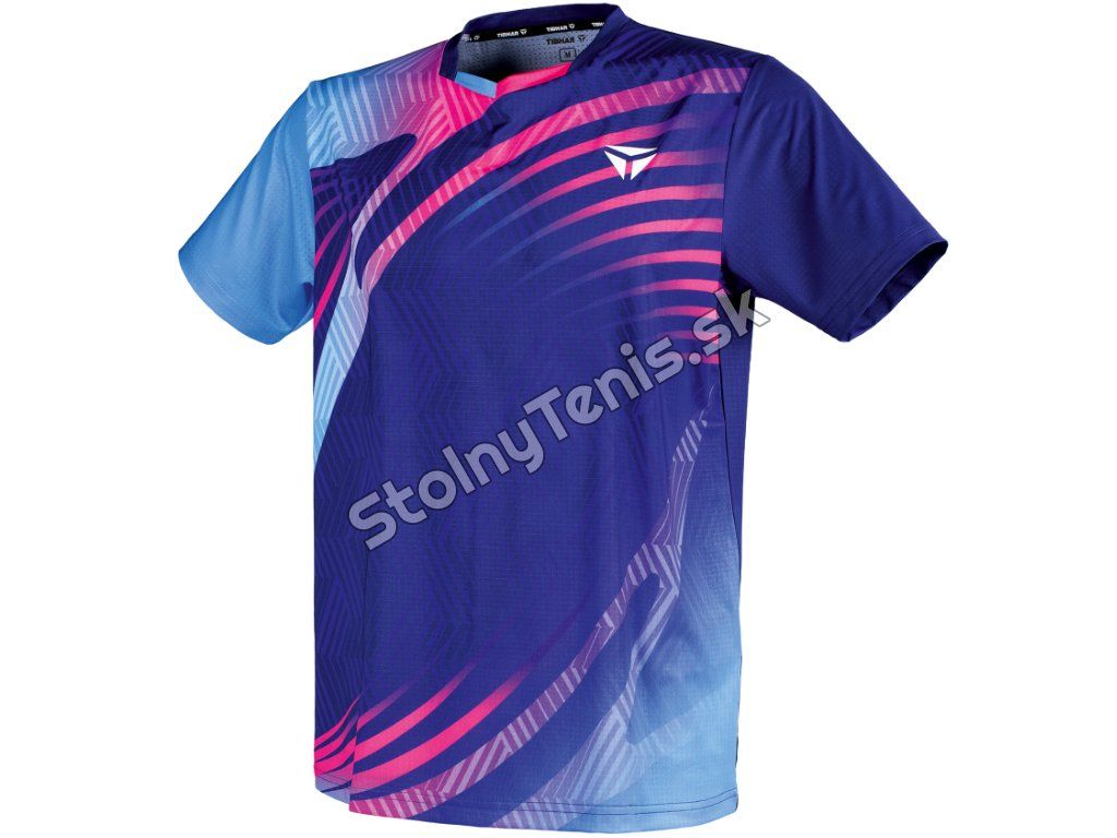 Výrazné farebné kombinácie (modrá/ružová, modrá/oranžová) dodávajú tričku energiu a jedinečný charakter. Na stole budete neprehliadnuteľný.